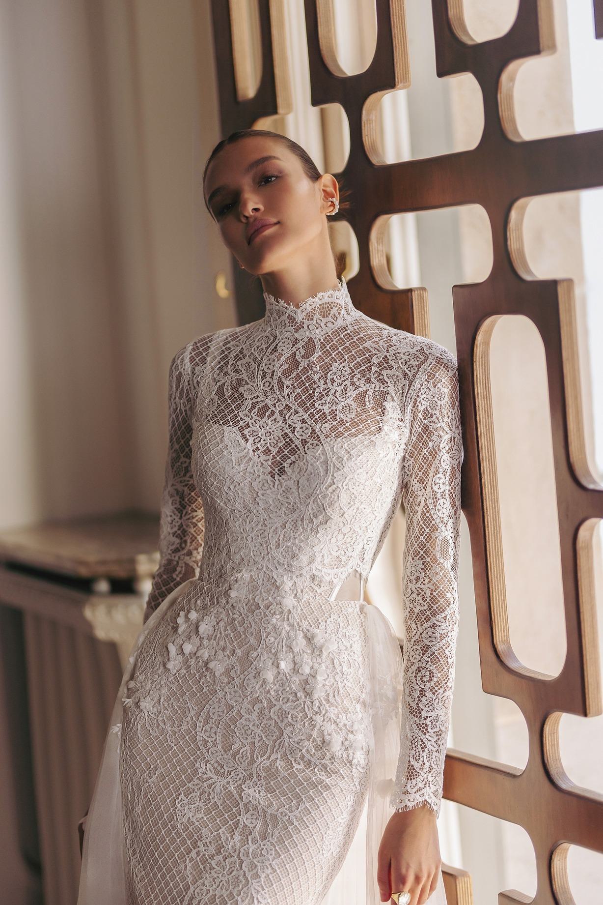 With a variety of styles, including A-line, mermaid, ball gowns, jumpsuits, and sleek straight-cut designs, the collection offers something for every bride. Crafted from luxurious materials like silk mikado, Italian chantilly lace, and striking plissé fabric, each dress represents our dedication to quality and sophistication.