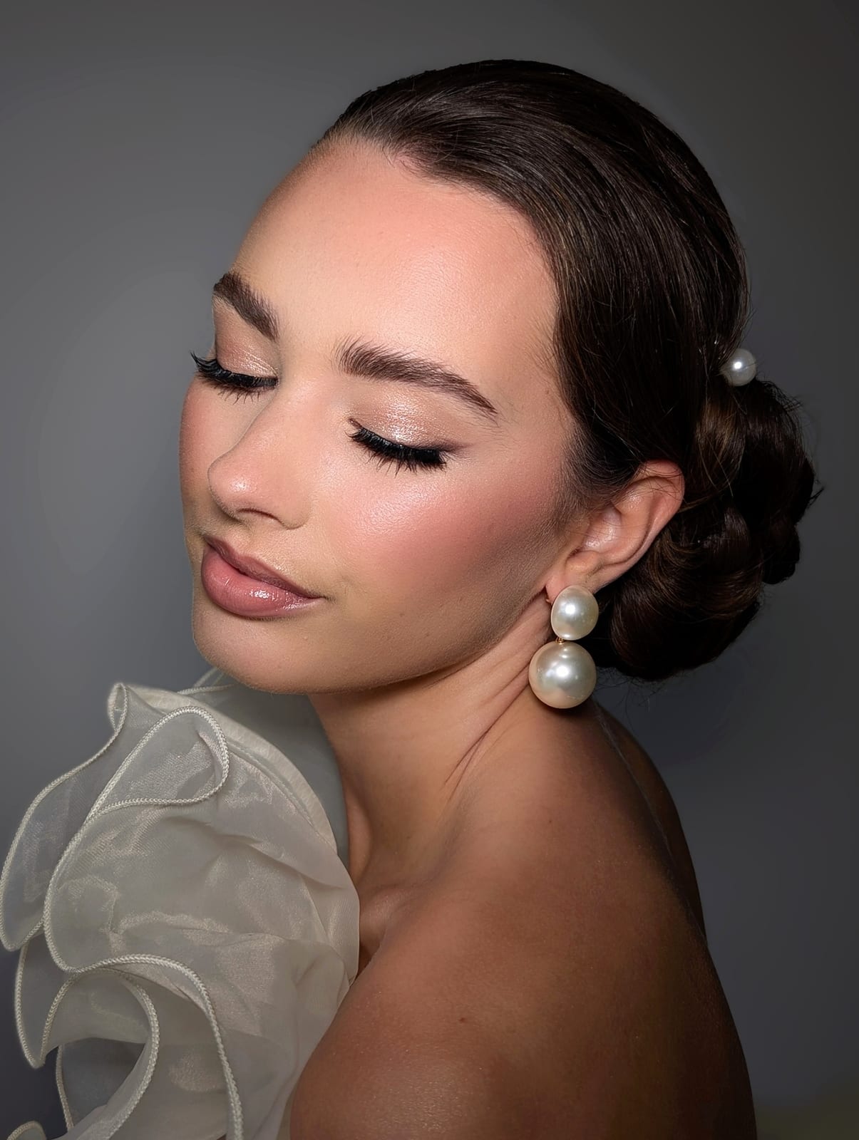 I support my brides every step of the way. From the moment they enquire, I aim to make the process seamless and enjoyable. I begin with a consultation and moodboard to help visualise their dream look. We then meet for a preview appointment where we refine their style, talk through their overall bridal vision, and offer skincare and prep advice. On the wedding day, I bring a calming presence, working to a carefully planned schedule, staying until the bride is fully dressed, and ensuring every detail is perfect—including veils, hair accessories, and final touch-ups. I also have a trusted team who support me for larger bridal parties, ensuring everyone is looked after beautifully.