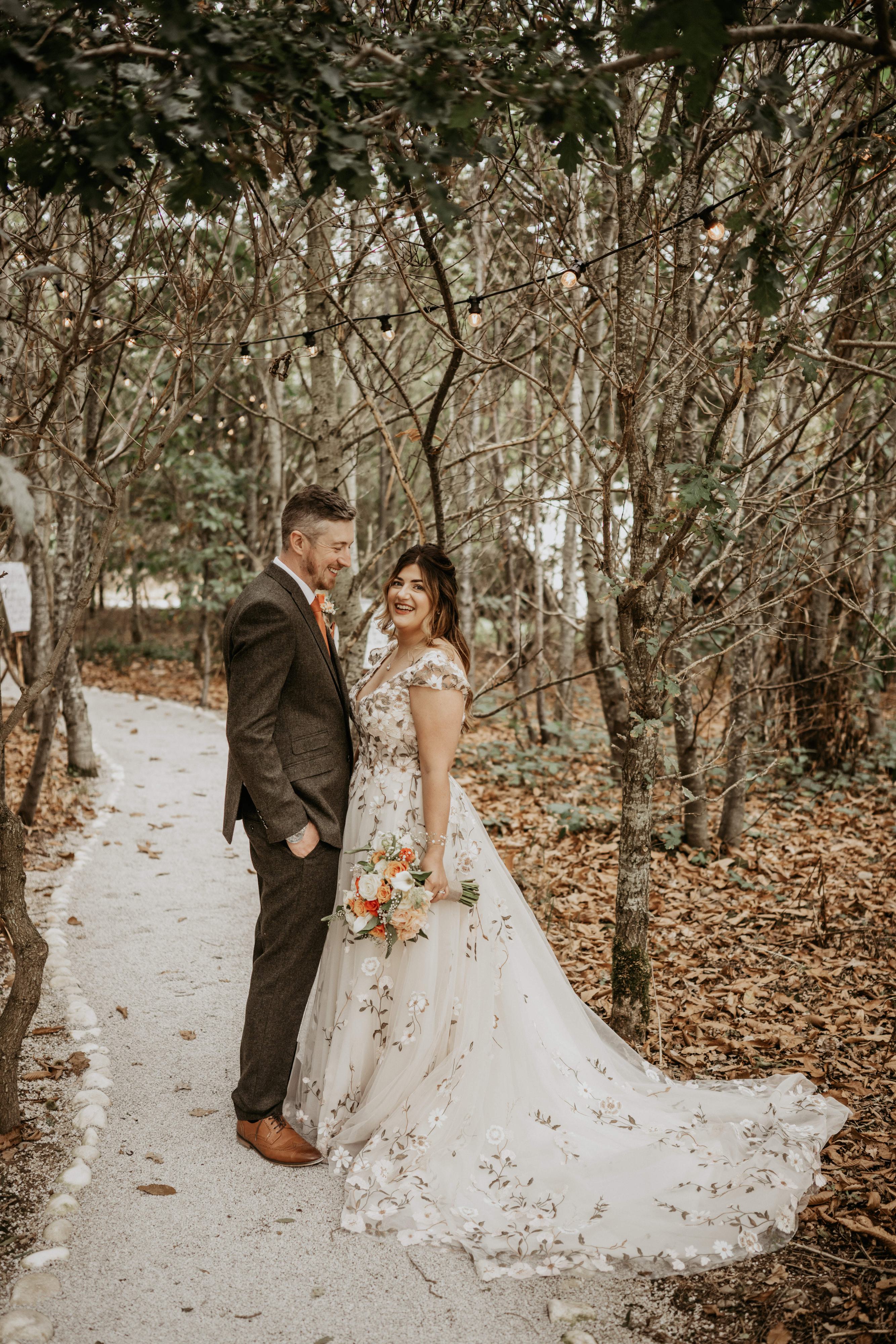 Ever since I was little I have always wanted an outdoor woodland wedding it's always how I envisioned my wedding risky in England. We got married at Royal Forest Wedding Venue in South Derbyshire and I couldn't have picked a better venue it was outdoor and in a forest but the way they have designed it, it didn't matter if it rained. It actually made it more magical because you could hear the rain in the trees but on our wedding day we honestly couldn't have asked for better weather. We wanted quite a rustic looking wedding, so we went for colours of rust, cream and forest green and all our signs were made out of burnt wood that we made ourselves. Everything went perfectly, we made a 'walk our story' as well which guests could read as they walked into the venue it was a bride description of the story of how we met. Absolutely nothing went wrong our wedding day, we couldn't have asked for anything better and if I could do it all again I absolutely would.