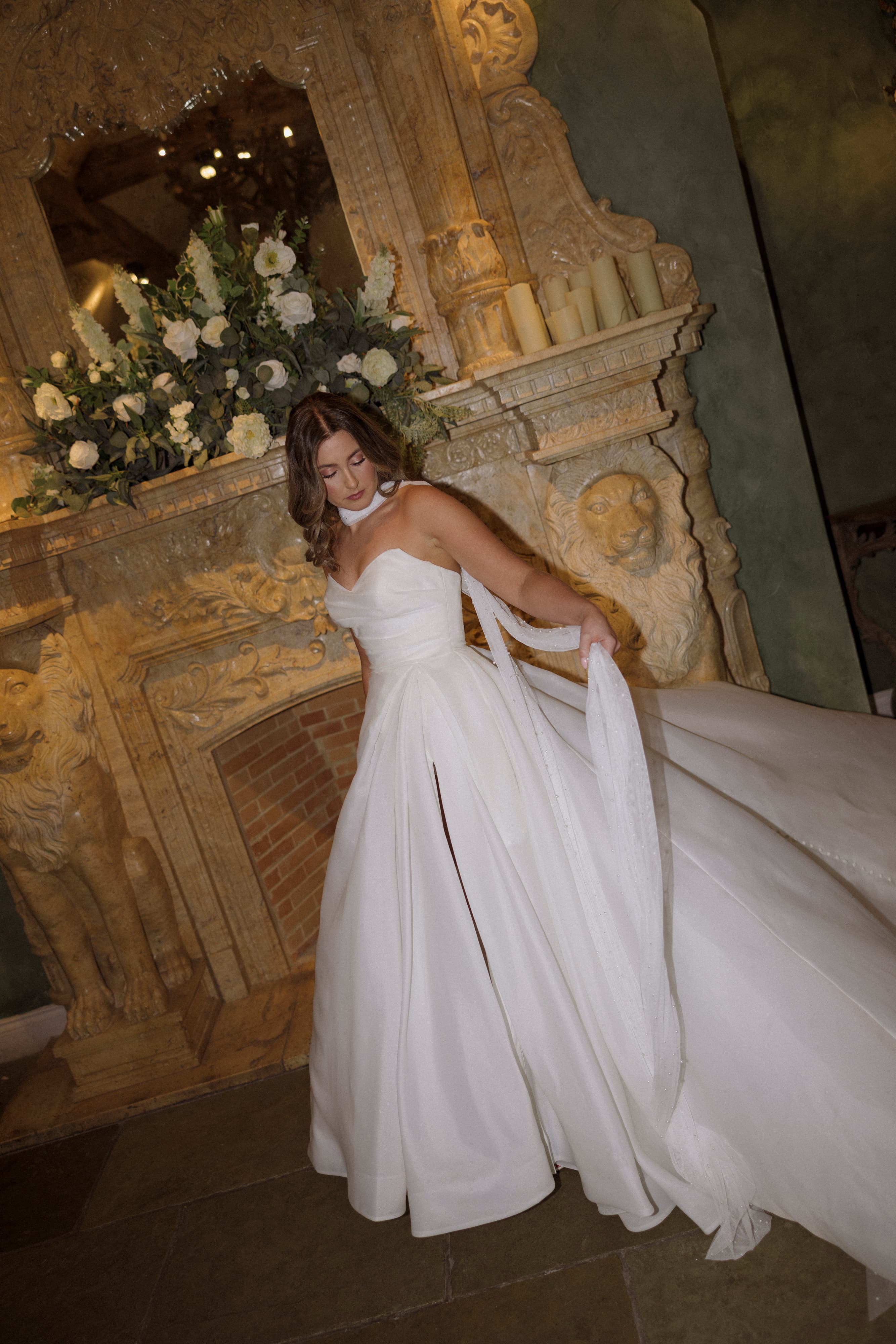 North, the striking organza bridal gown by Dotty Collection. Sweetheart strapless neckline on a pleated detailed bodice. Soft flowing a-line skirt complete with the high side slit.